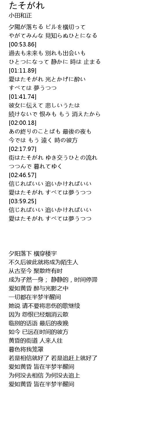 | [04:18.57] | 愛はたそがれ すべては夢うつつ |