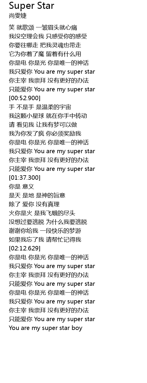| [02:29.579] | zhǐ néng ài nǐ You are my super star |