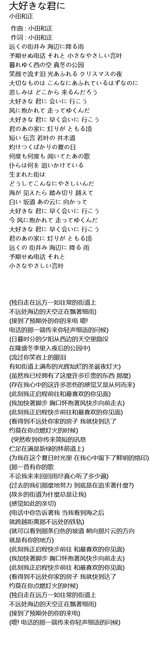 | [01:31.78] | 大好きな 君に 早く会いに 行こう |