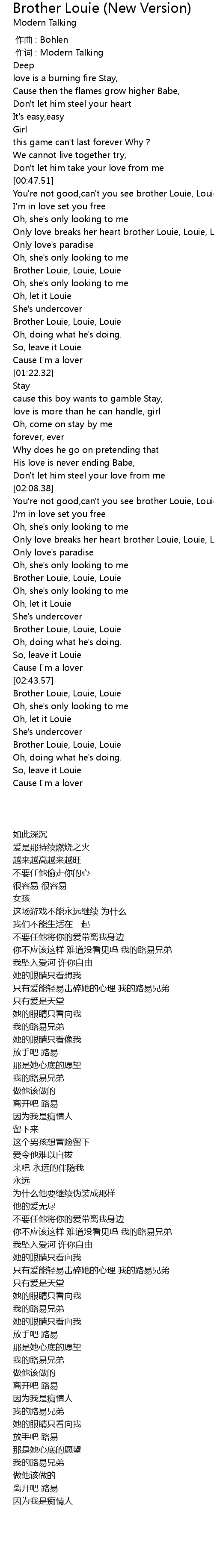 | [02:35.97] | Brother Louie, Louie, Louie |