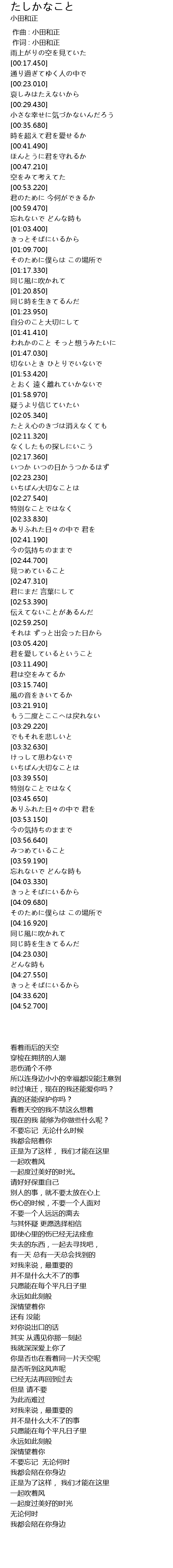 | [00:01.00] | 作词 : 小田和正 |