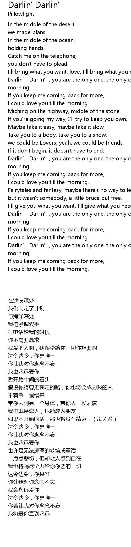 | [00:55.000] | Darlin' Darlin', you are the only one, the only one until the morning. |