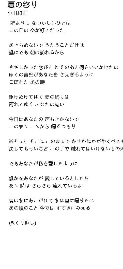 | やさしかった恋びとよ そのあと何をいいかけたの | |