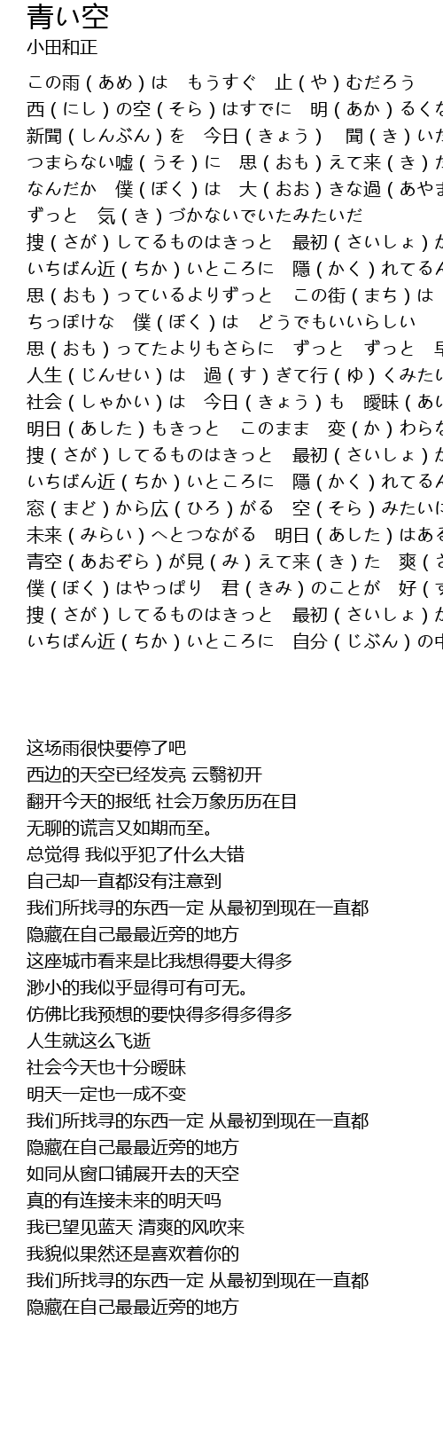 | [02:15.900] | 明日(あした)もきっと このまま 変(か)わらないだろう |
