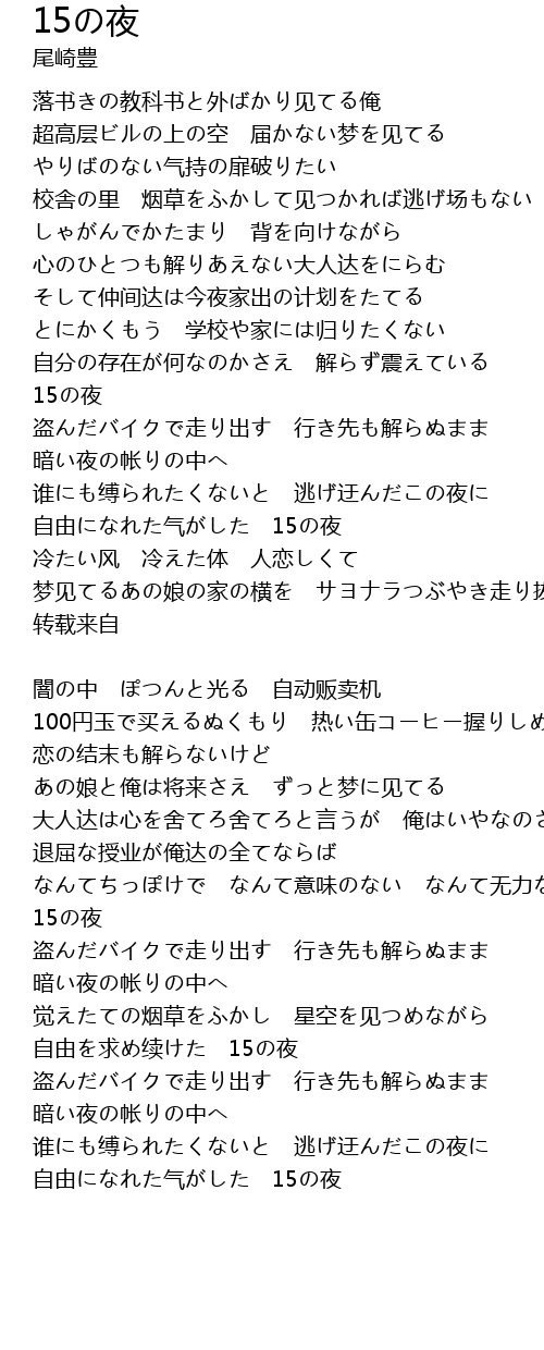 | Song | 15の夜 |
