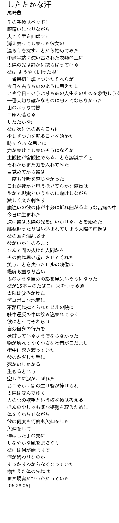 | [01:12.20] | したたかな汗 |