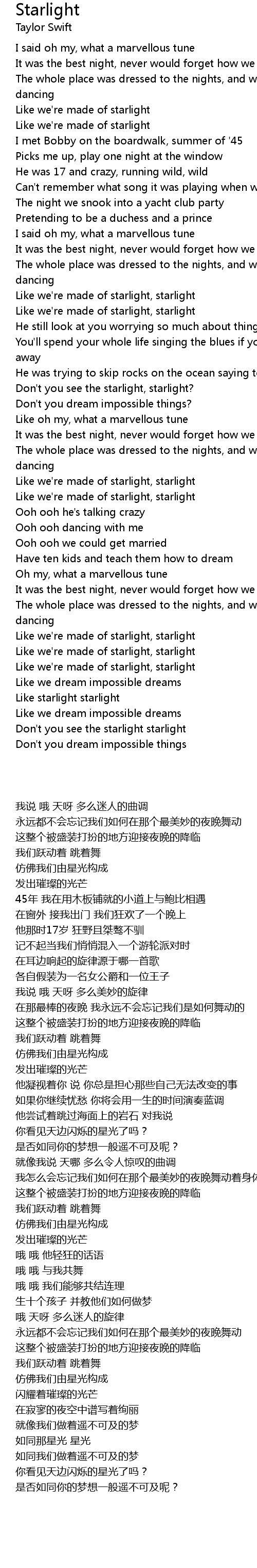 Like starlight starlight |