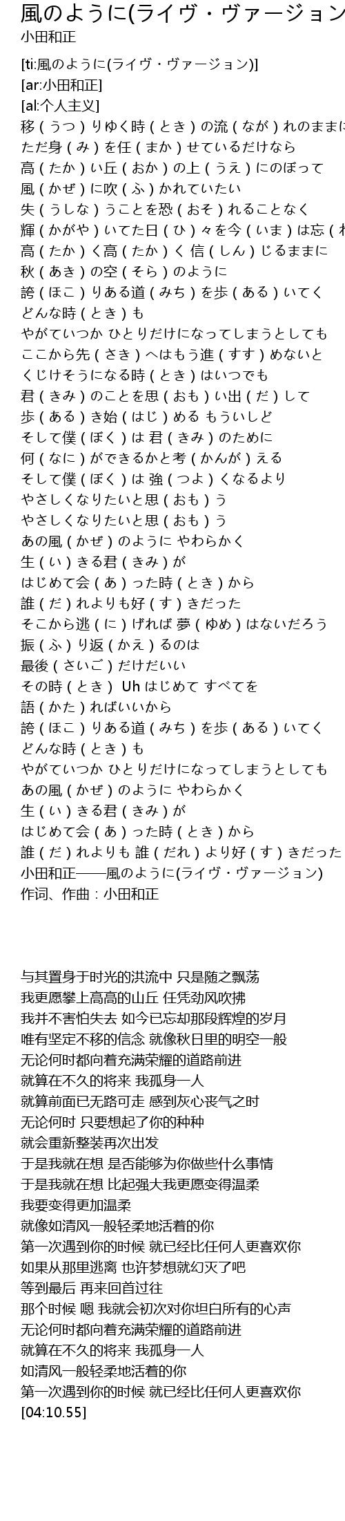 | [04:10.55] | 小田和正——風のように(ライヴ・ヴァージョン) |