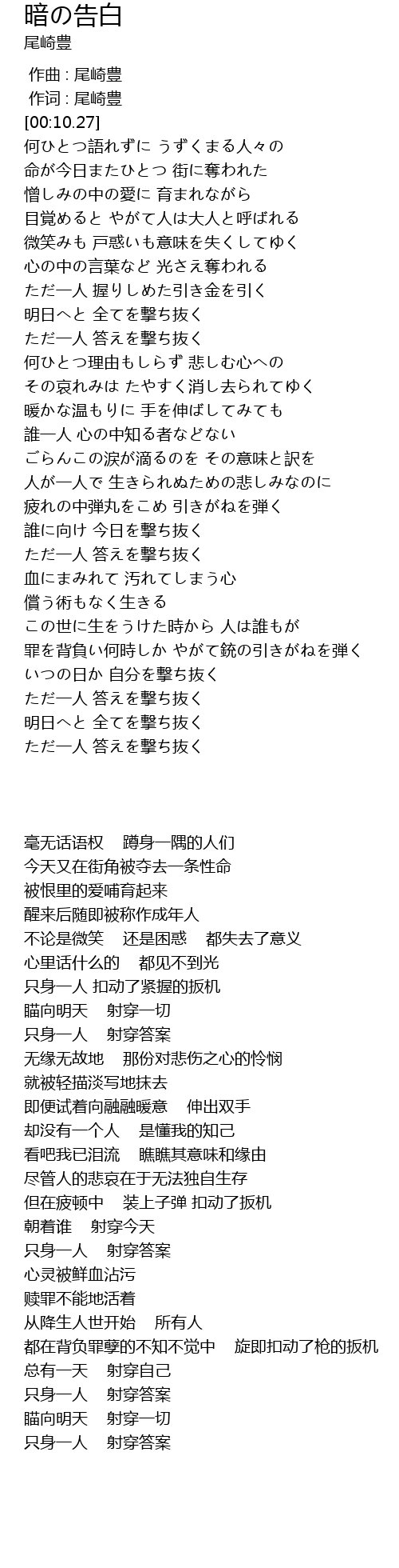 | [00:00.00] | 作曲 : 尾崎豊 |