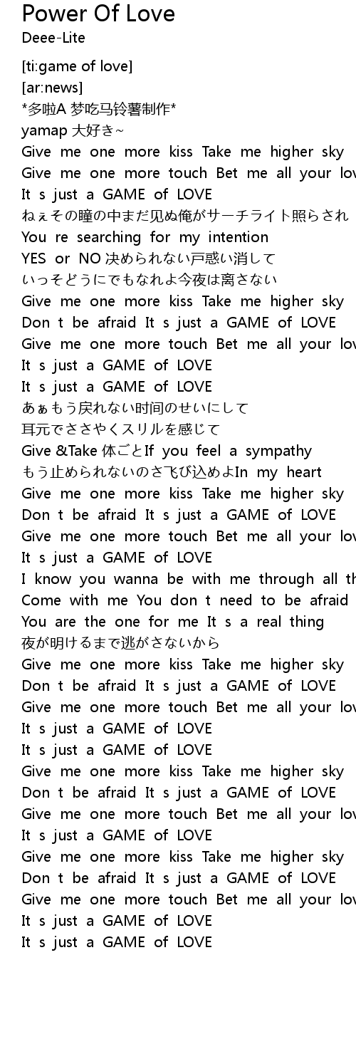 | [01:07.29] | Don t be afraid It s just a GAME of LOVE |
