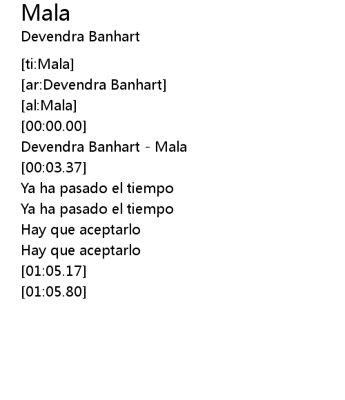 | [00:00.88] | Devendra Banhart - Mala |