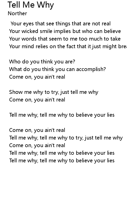 | Tell me why, tell me why to try, just tell me why | |
