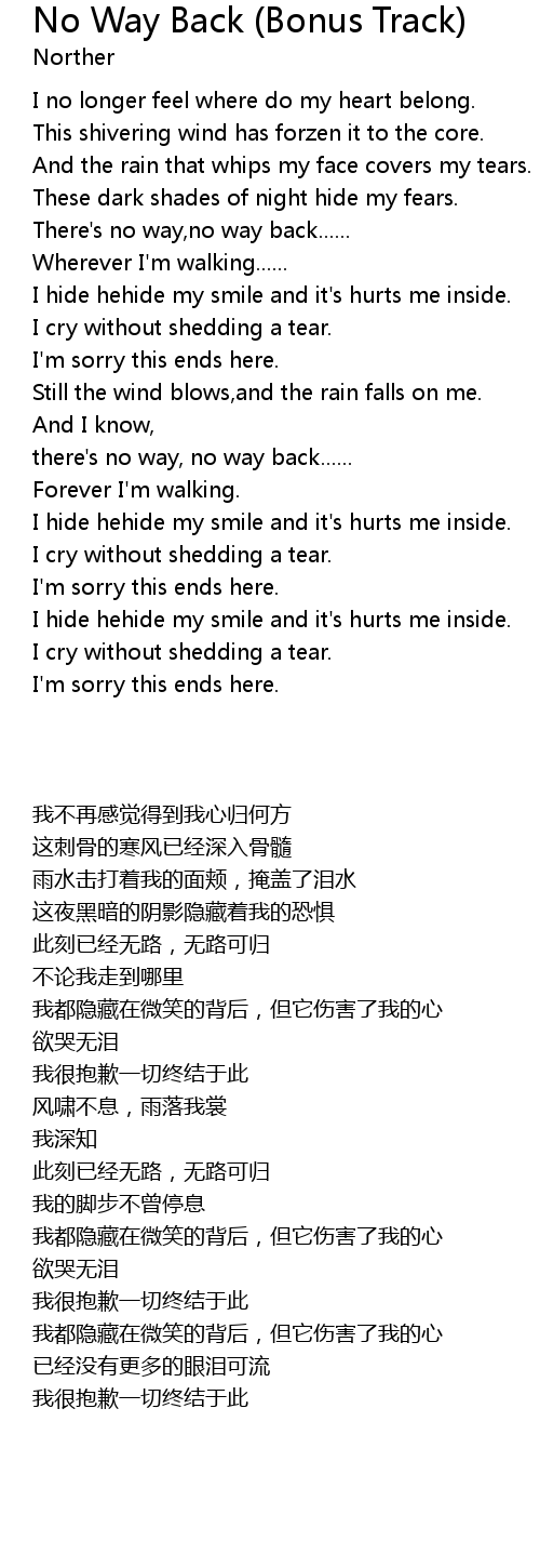 | [01:31.00] | I no longer feel where do my heart belong. |