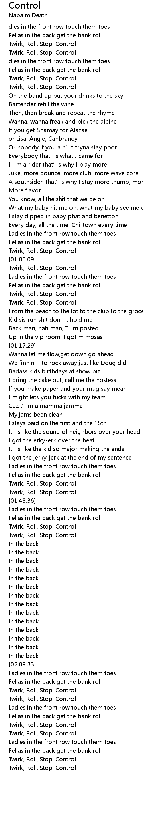 | [01:52.18] | Twirk, Roll, Stop, Control |