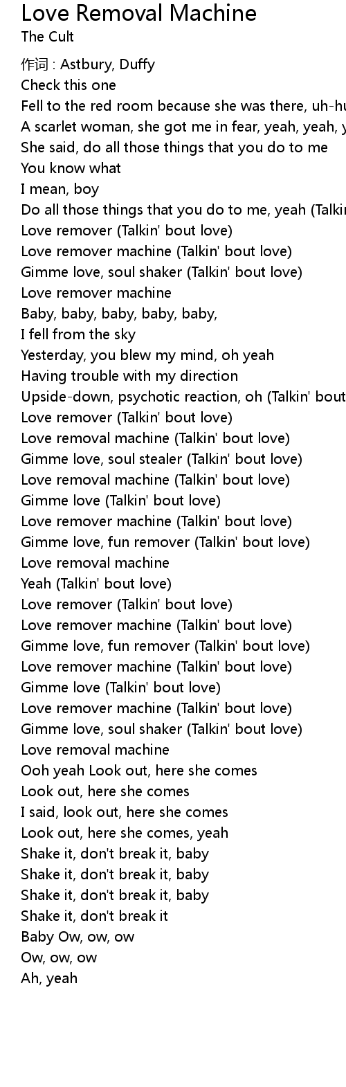 | Love remover machine Talkin' bout love | |