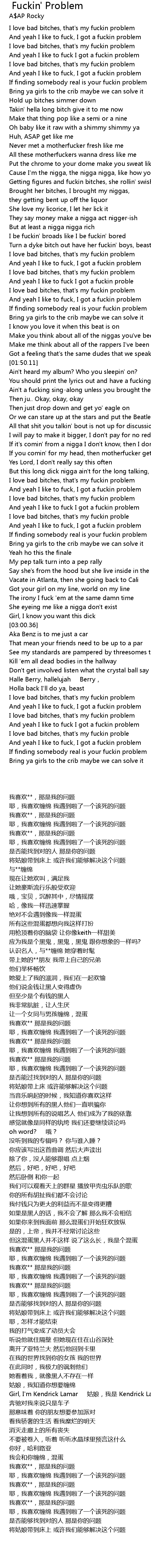 | [03:33.55] | And yeah I like to fuck, I got a fuckin problem |
