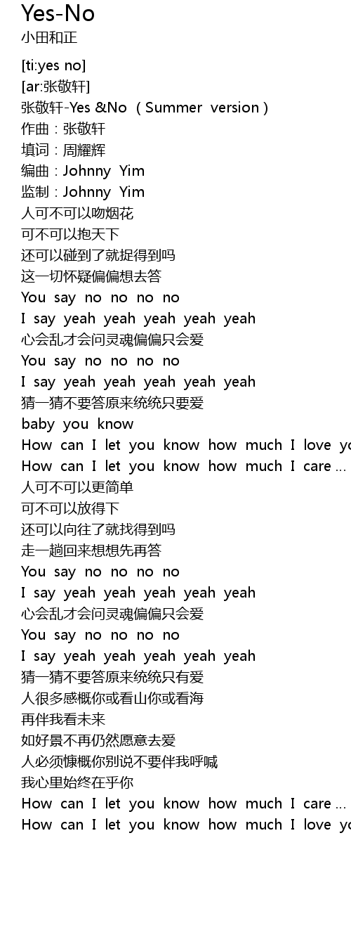 | [00:01.473] | 张敬轩-Yes &No (Summer version) |