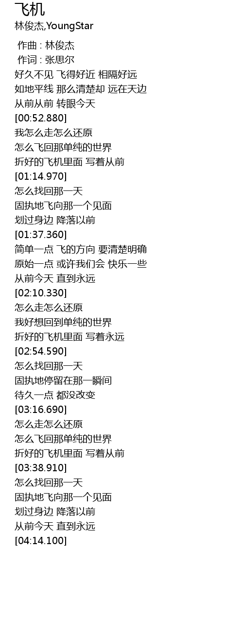| [03:30.430] | 折好的飞机里面 写着从前 |