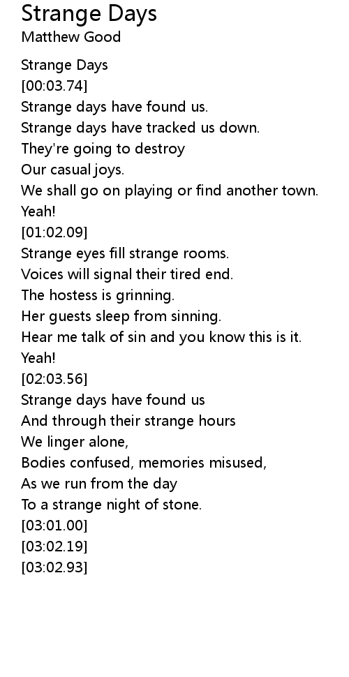Strange days have tracked us down. |
