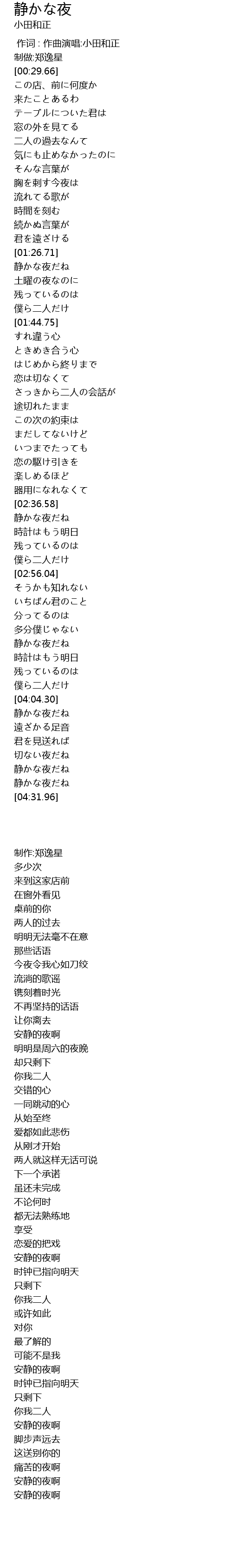 | [00:00.00] | 作词 : 作曲演唱:小田和正 |