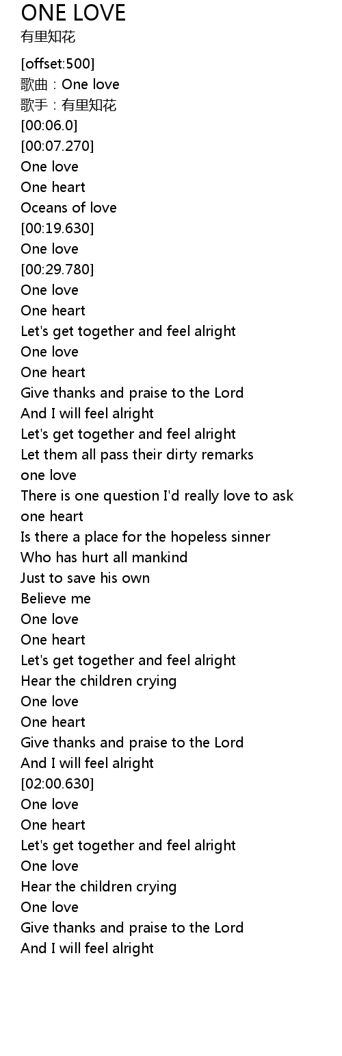 | [02:01.70] | One love |