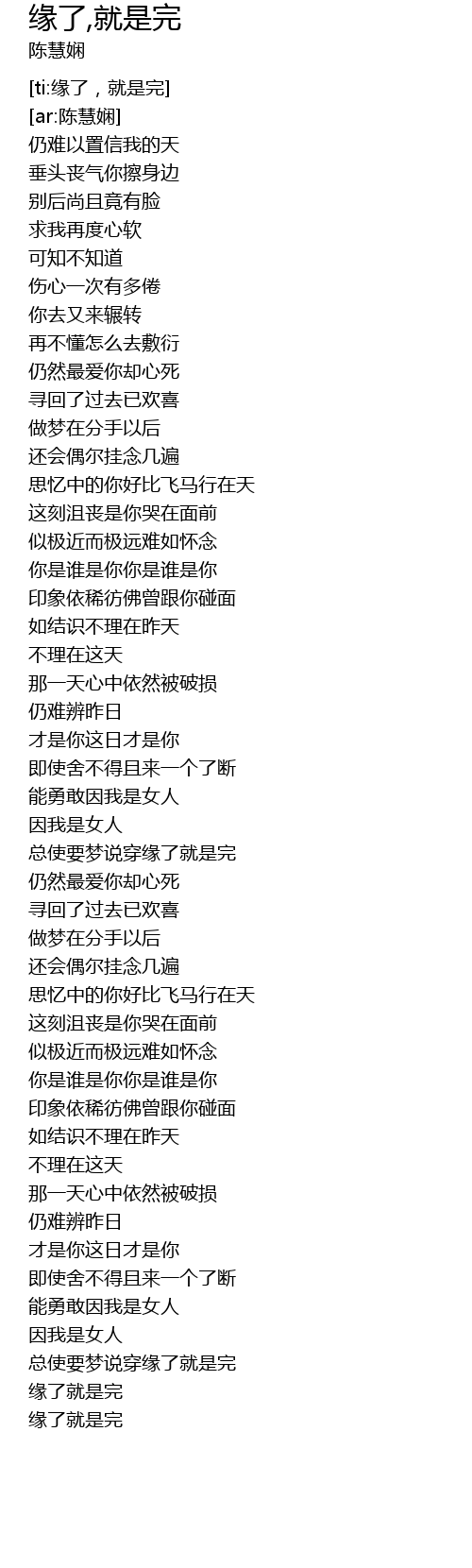 | Song | 缘了,就是完 |