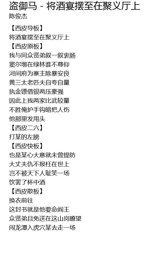 | Song | 盗御马 - 将酒宴摆至在聚义厅上 |