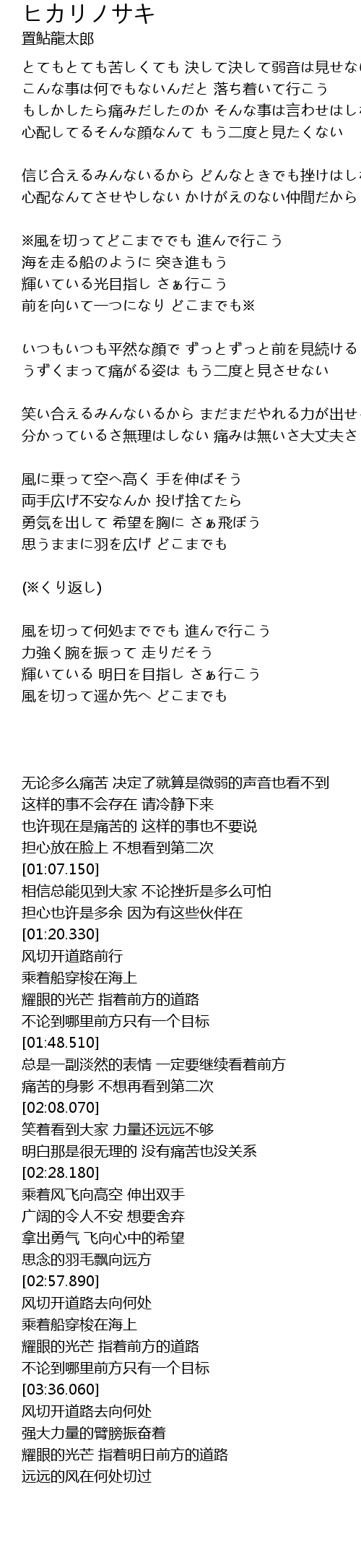 | 勇気を出して 希望を胸に さぁ飛ぼう | |