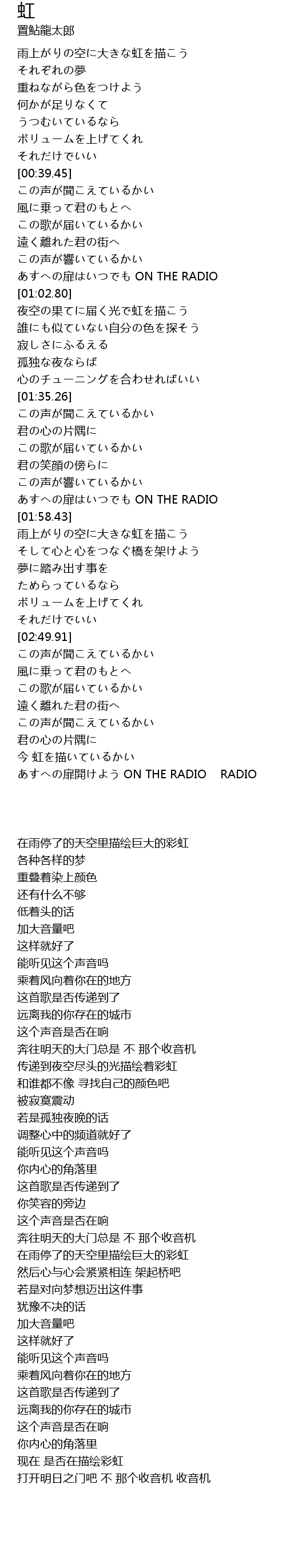 | [03:13.27] | あすへの扉開けよう ON THE RADIO RADIO |