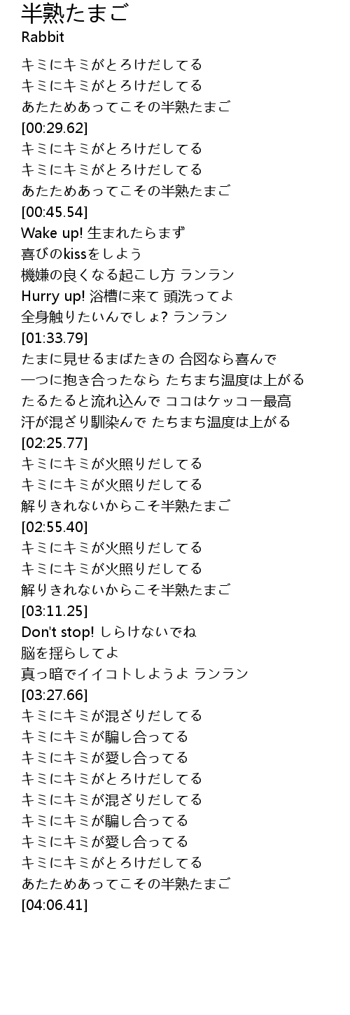 | [00:38.62] | あたためあってこその半熟たまご |