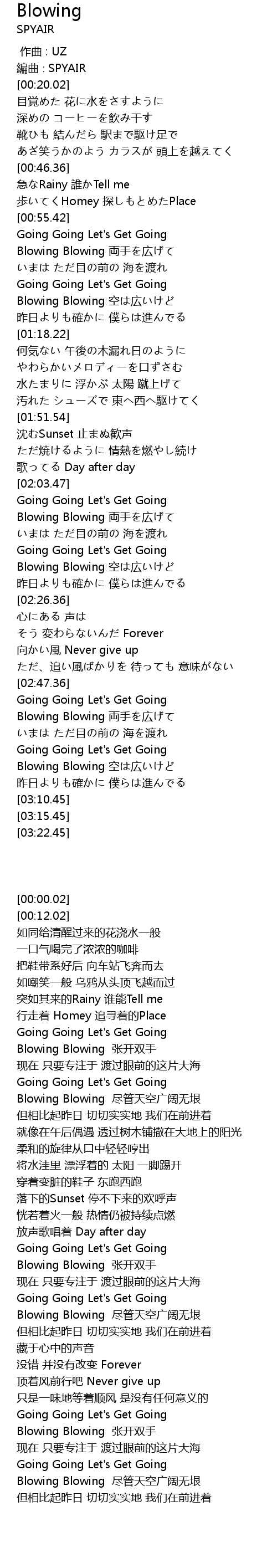 | [02:17.43] | Blowing Blowing kōng guǎng |