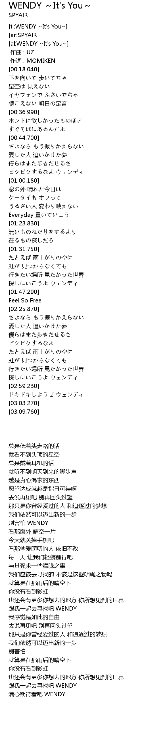 | [02:56.230] | 探しにいこうよ ウェンディ |