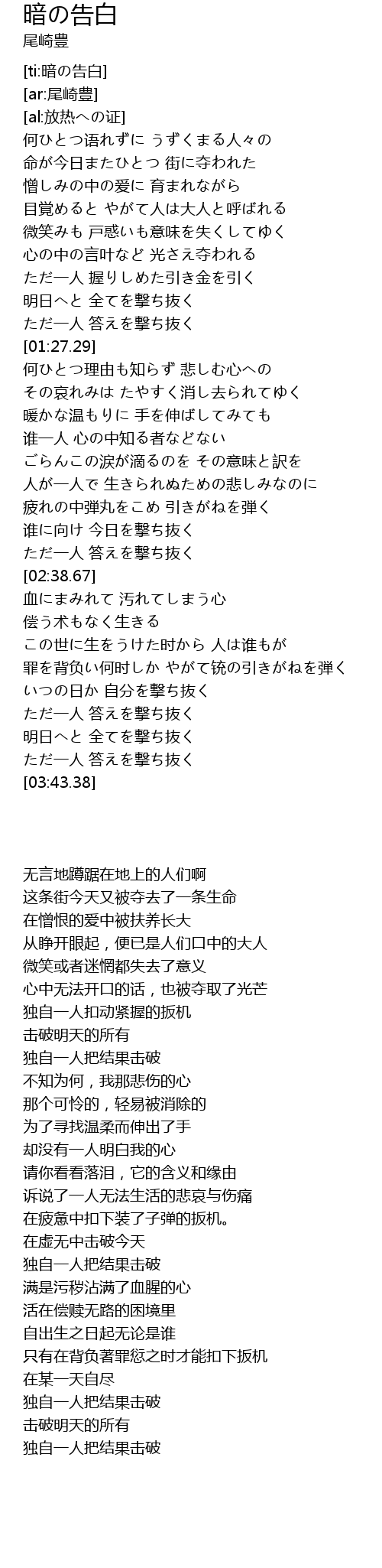 | [03:02.47] | 罪を背负い何时しか やがて铳の引きがねを弾く |