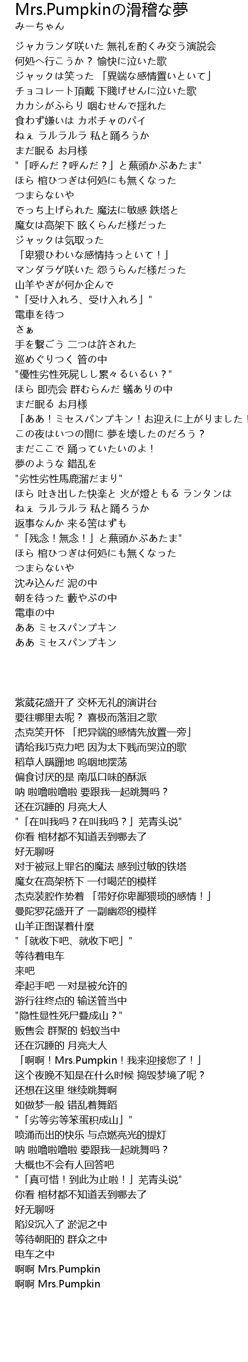 | [02:46.33] | 「ああ!ミセスパンプキン!お迎えに上がりました!」 |
