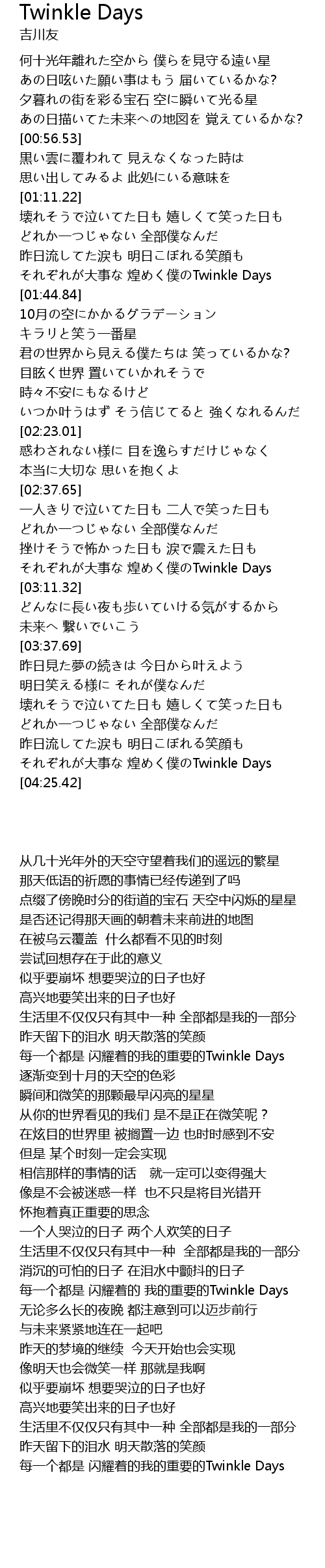 | [03:00.00] | dà shì huáng pú Twinkle Days |