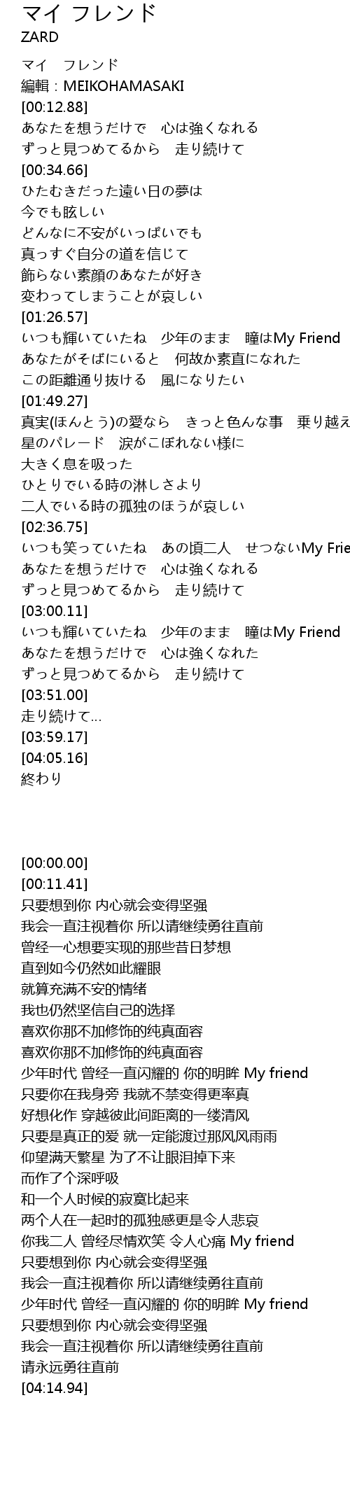 | [00:11.41] | 編輯:MEIKOHAMASAKI |