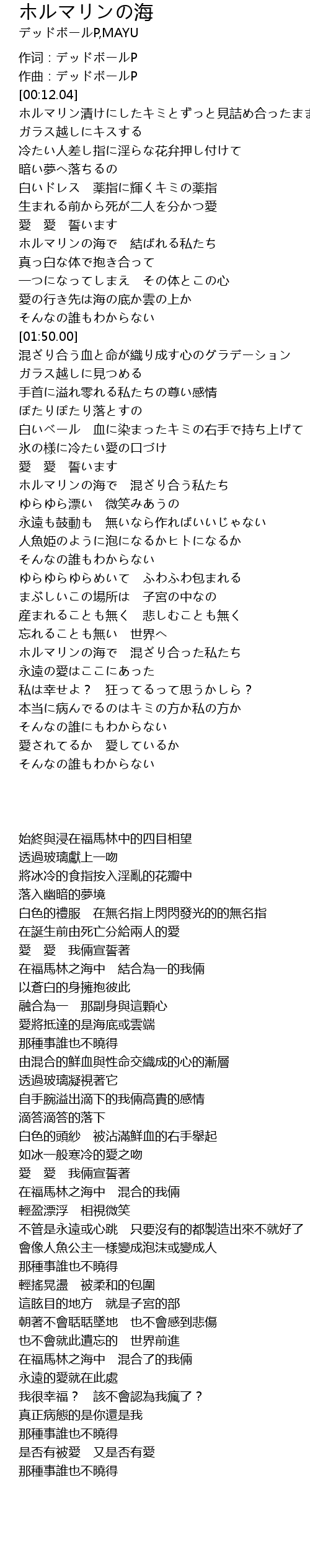 | [02:54.02] | ホルマリンの海で 混ざり合う私たち |