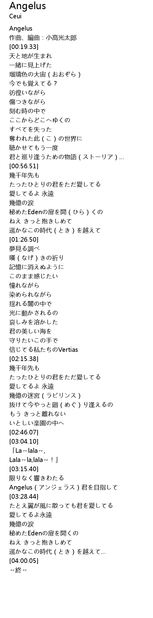 | [03:22.25] | Angelus(アンジェラス)君を目指して |