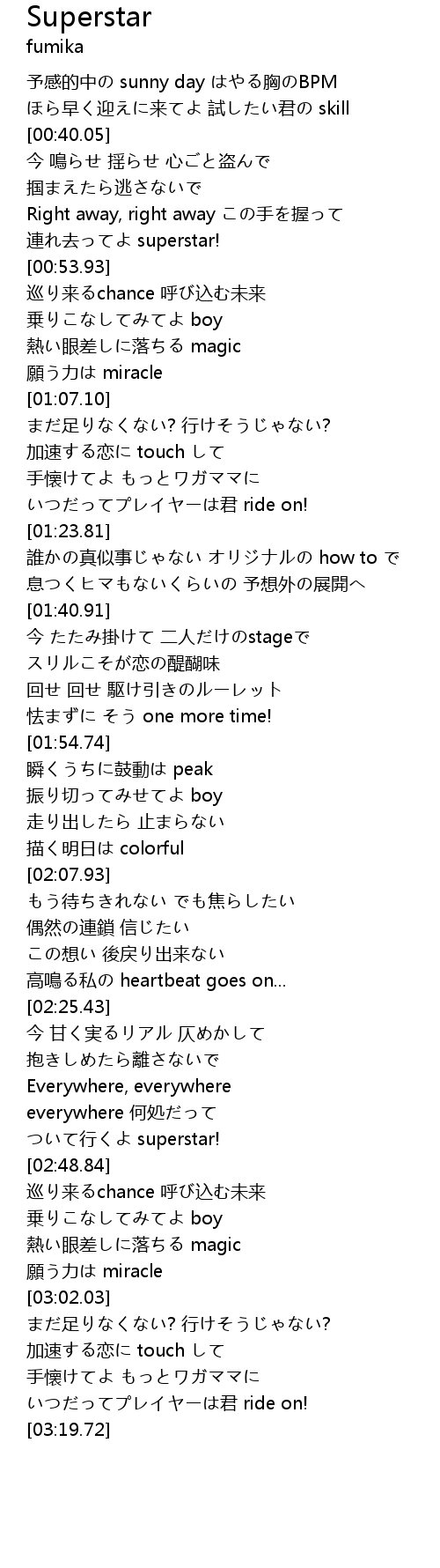 | [02:45.61] | ついて行くよ superstar! |