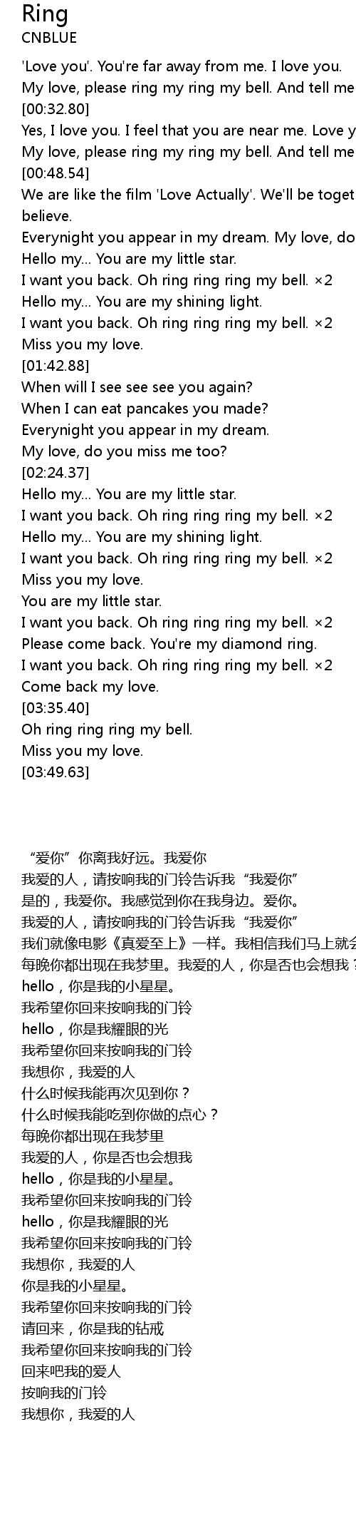 | [00:41.07] | My love, please ring my ring my bell. And tell me now "I love you". |