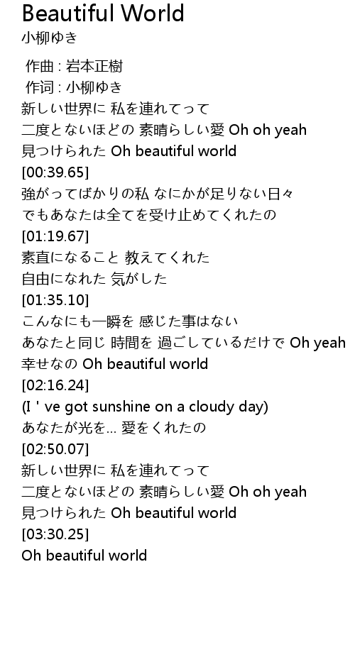 | [00:30.75] | 見つけられた Oh beautiful world |