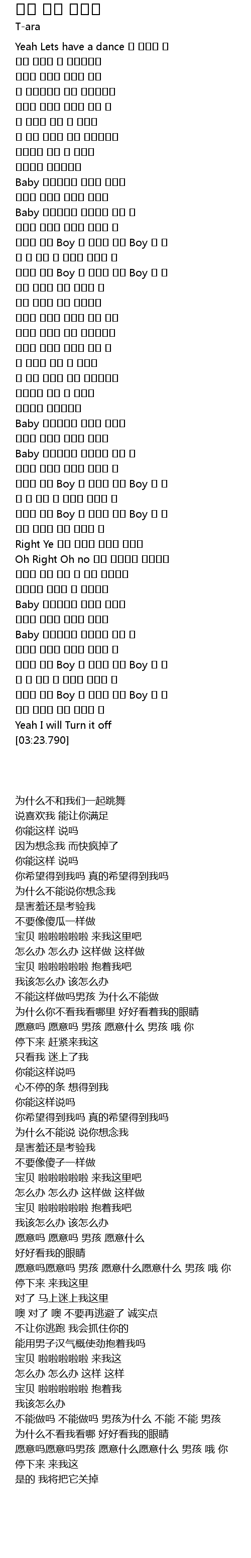 | [02:54.230] | Baby 랄랄랄라라 안아주면 좋아 난 |