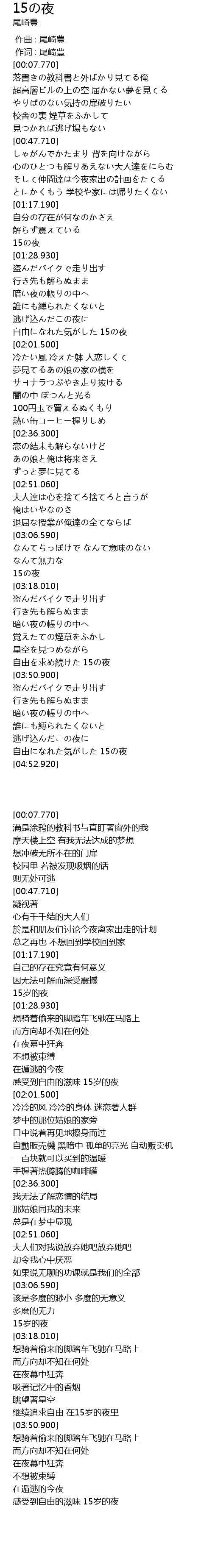 | [04:46.680] | 自由になれた気がした 15の夜 |