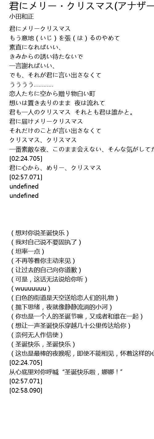 | [02:32.255] | 君に心から、めりー、クリスマス |