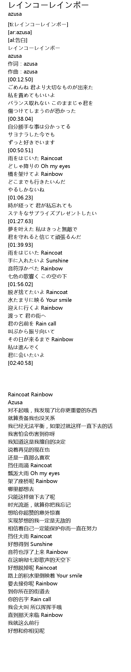 | [01:41.15] | yǔ Raincoat |