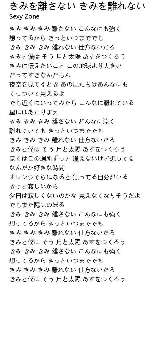きみ きみ きみ 離れない 仕方ないだろ |
