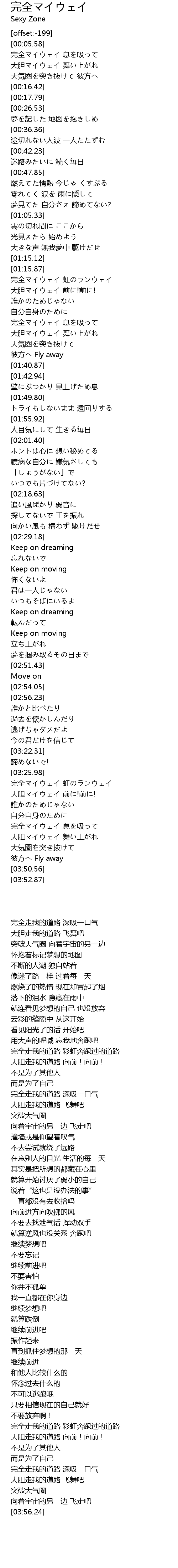 | [00:06.34] | 完全マイウェイ 息を吸って |