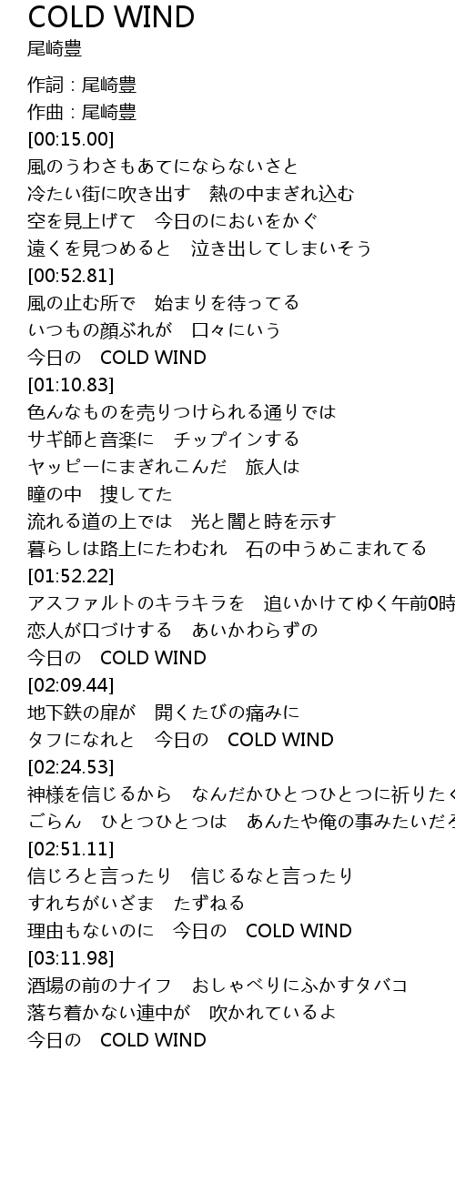 | [03:08.51] | 理由もないのに 今日の COLD WIND |