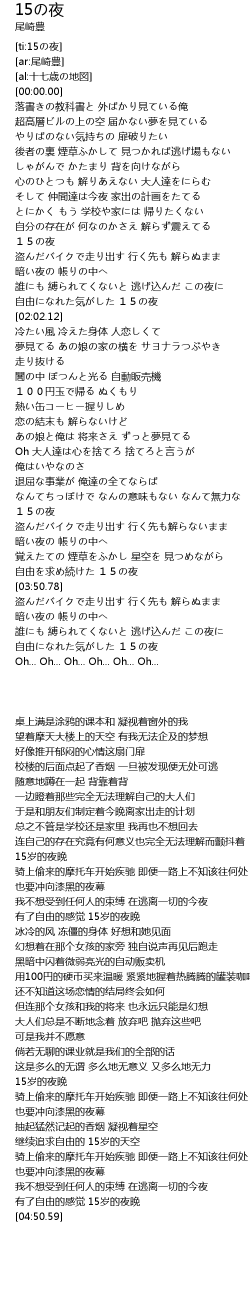 | [04:45.71] | 自由になれた気がした 15の夜 |
