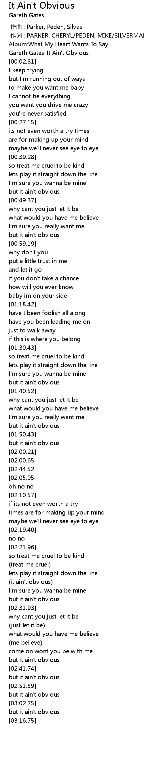 | [00:03.65] | Gareth Gates-It Ain't Obvious |